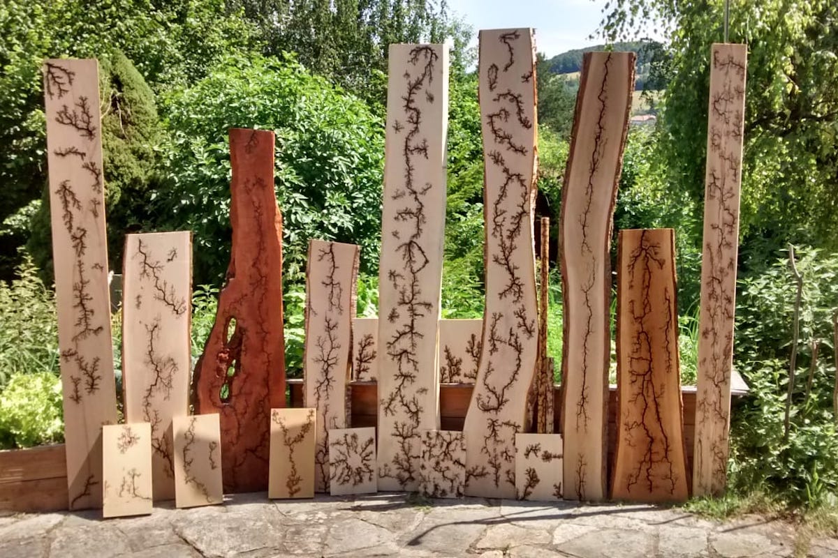 Das Team von Fulgur (lat. Bliz) Lignum (lat. Holz) beschäftigt sich mit dem Brennen von Lichtenberg-Figuren auf Holz mit Hilfe von Hochspannung.